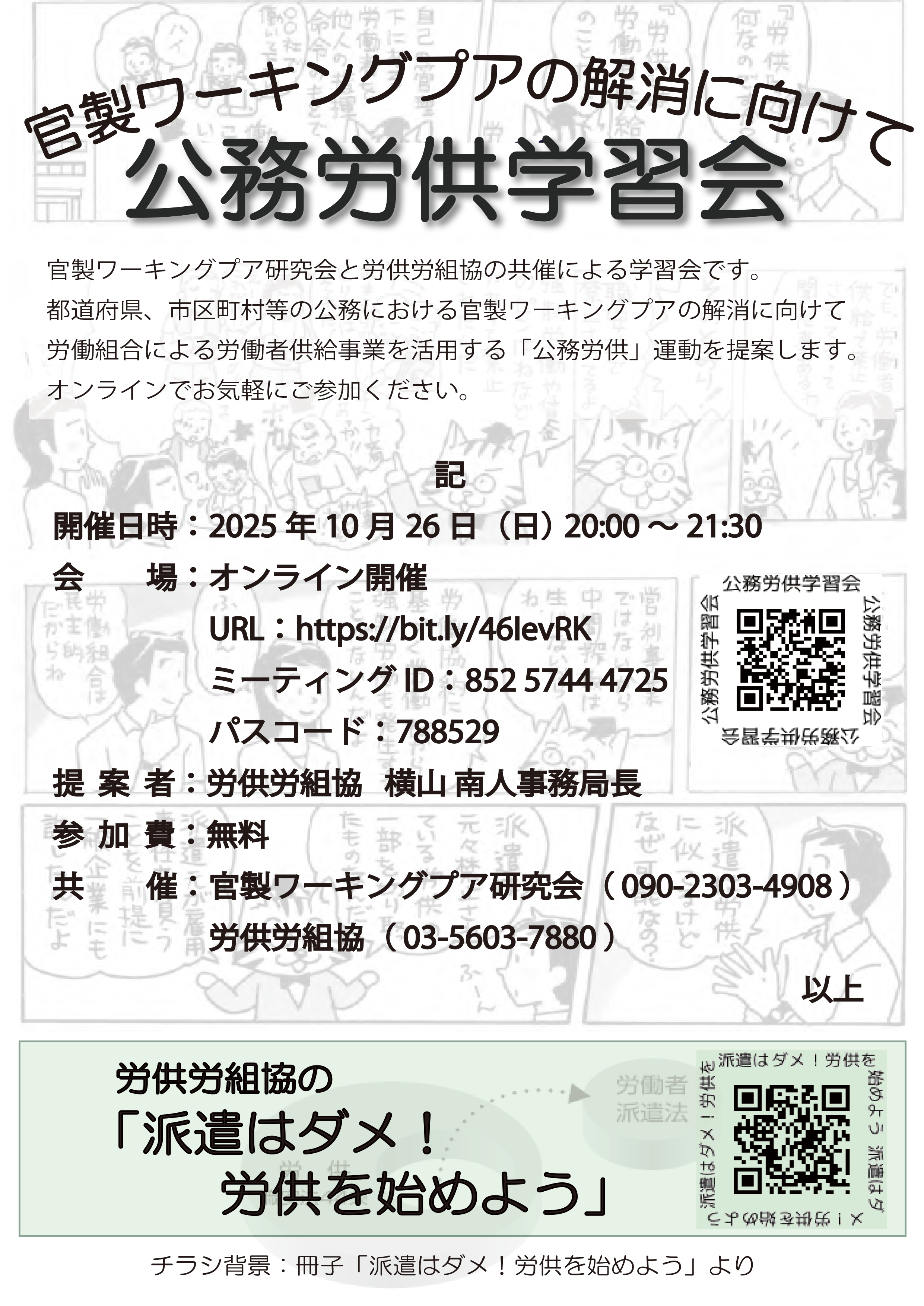 10月26日開催、公務労供学習会のお知らせ新着!!